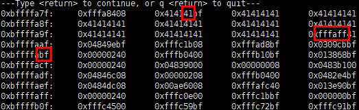 0xbffffa80에서 buf가 시작을 하고 SFP 부분을 확인해 보면 bffffaff로 ff가 쓰여진것을 확인 할 수 있습니다.