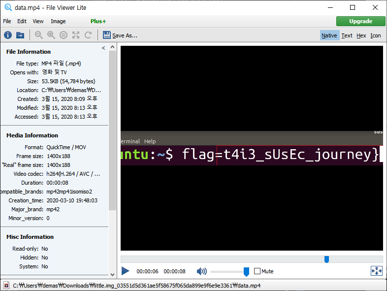 mp4 Viewer 프로그램인 File Viewer를 이용해서 확인해 보면 Flag를 획득 할 수 있습니다.