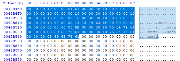 mp4 file structure 를 확인해 보면 특정 시그니처 앞 4바이트가 해당 시그니처의 사이즈가 됩니다.