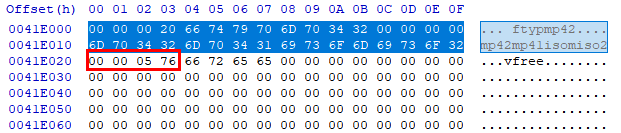 위의 ftypmp4 시그니처의 크기는 0x20로 아래와 같습니다.