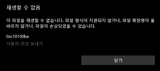 0x41E000~0x42B047 을 카빙하면 MP4 파일을 얻을 수 있는데 windows 기본 영상 프로그램에서는 아래와 같이 인식을 하지 못합니다.